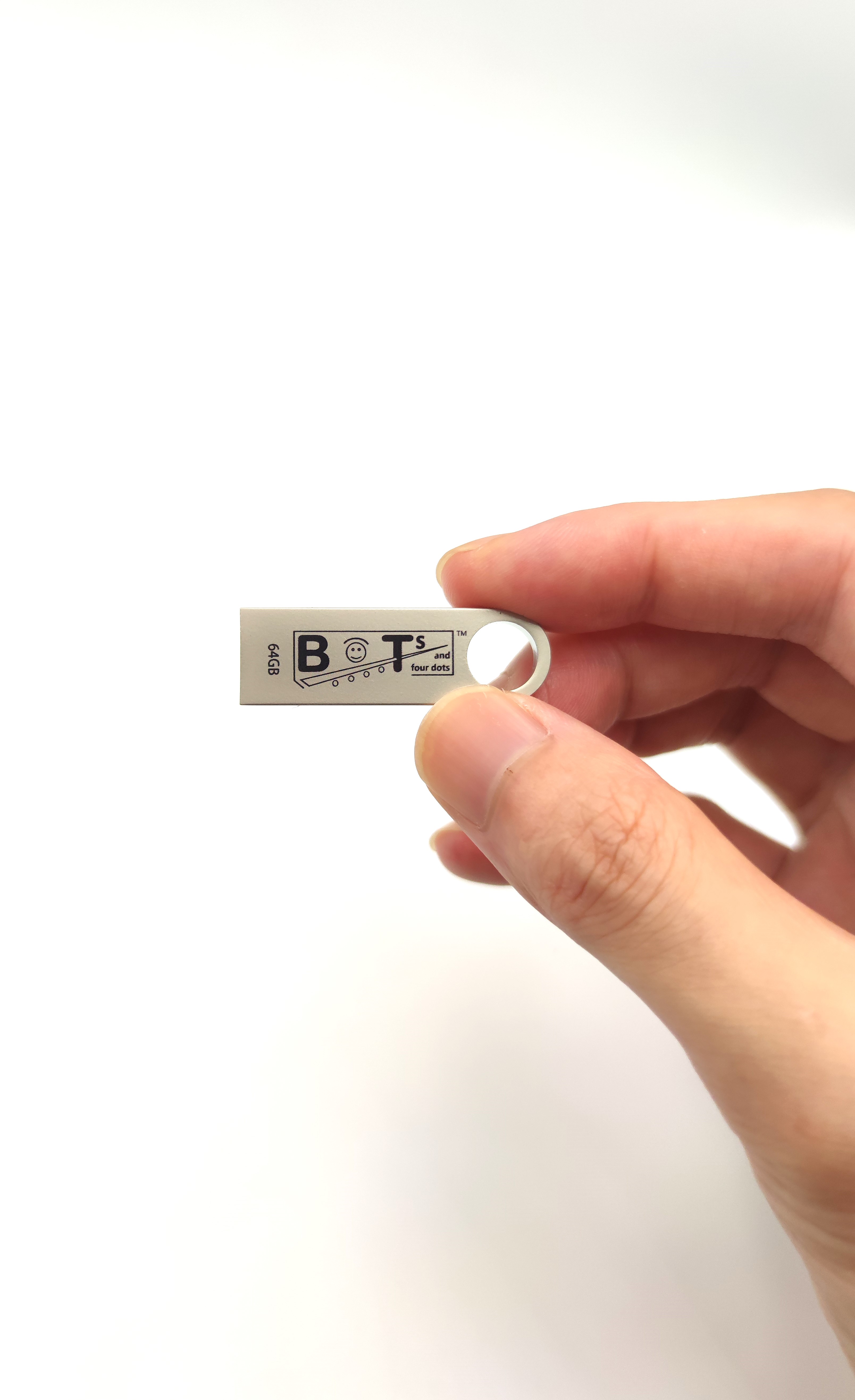 BOTs and four DOTs, 64GB Metal USB 2.0 Flash Drive, Memory Stick, Silvery, Ref. No. BOT-EL-0003.